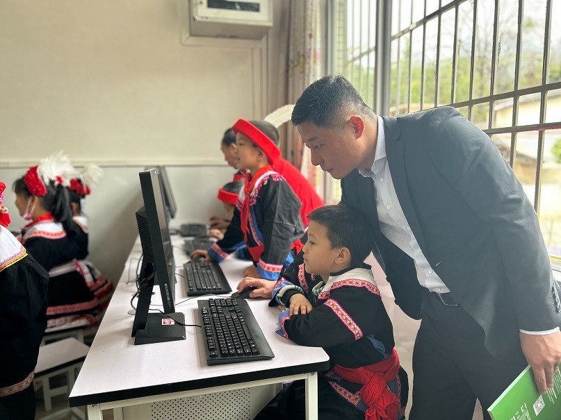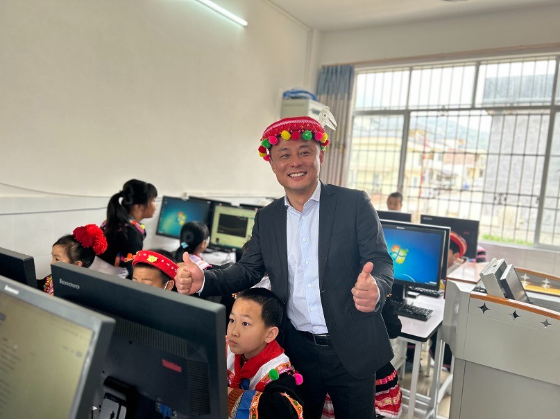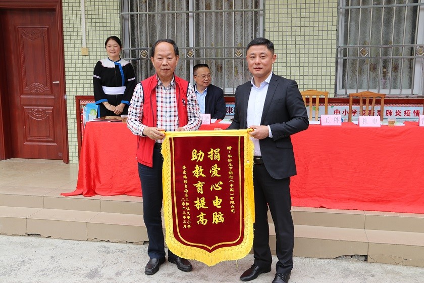 王科副行長向連南瑤族自治縣三排鎮(zhèn)大埂小學贈送“綠色愛心電腦教室”牌匾