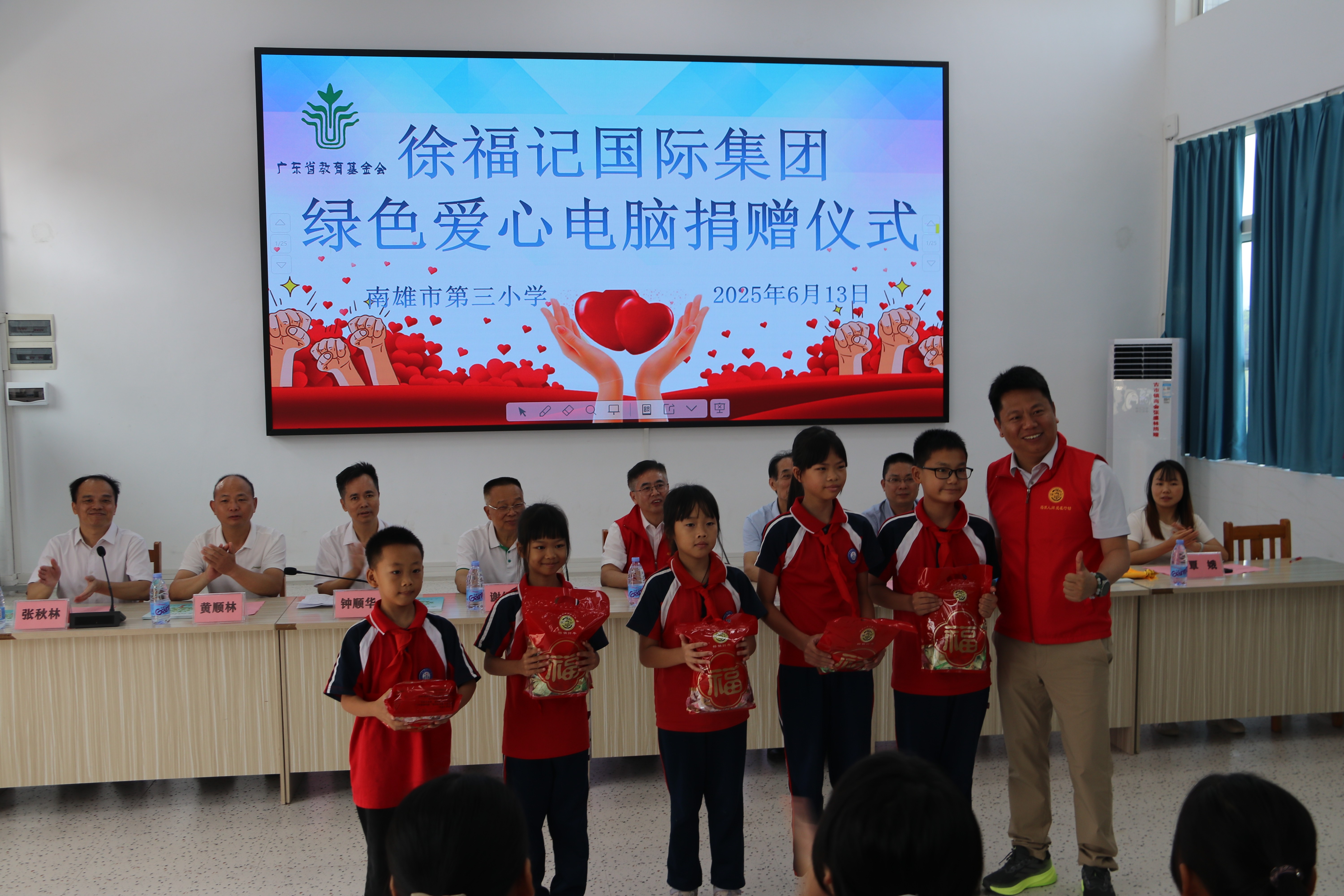 謝紹熺副秘書長表示,徐福記國際集團秉持初心、滿懷善心、奉獻愛心,積極支持教育,主動捐贈“綠色愛心電腦”,給廢舊電腦賦予新使命,讓閑置的電腦為農村教育和信息化建設重新開機。徐福記國際集團的愛心善舉不僅完善了學校的教學設備,為學校開展信息化教學工作提供了更好的條件,也為弘揚樂善好施的傳統美德樹立了優秀的榜樣!