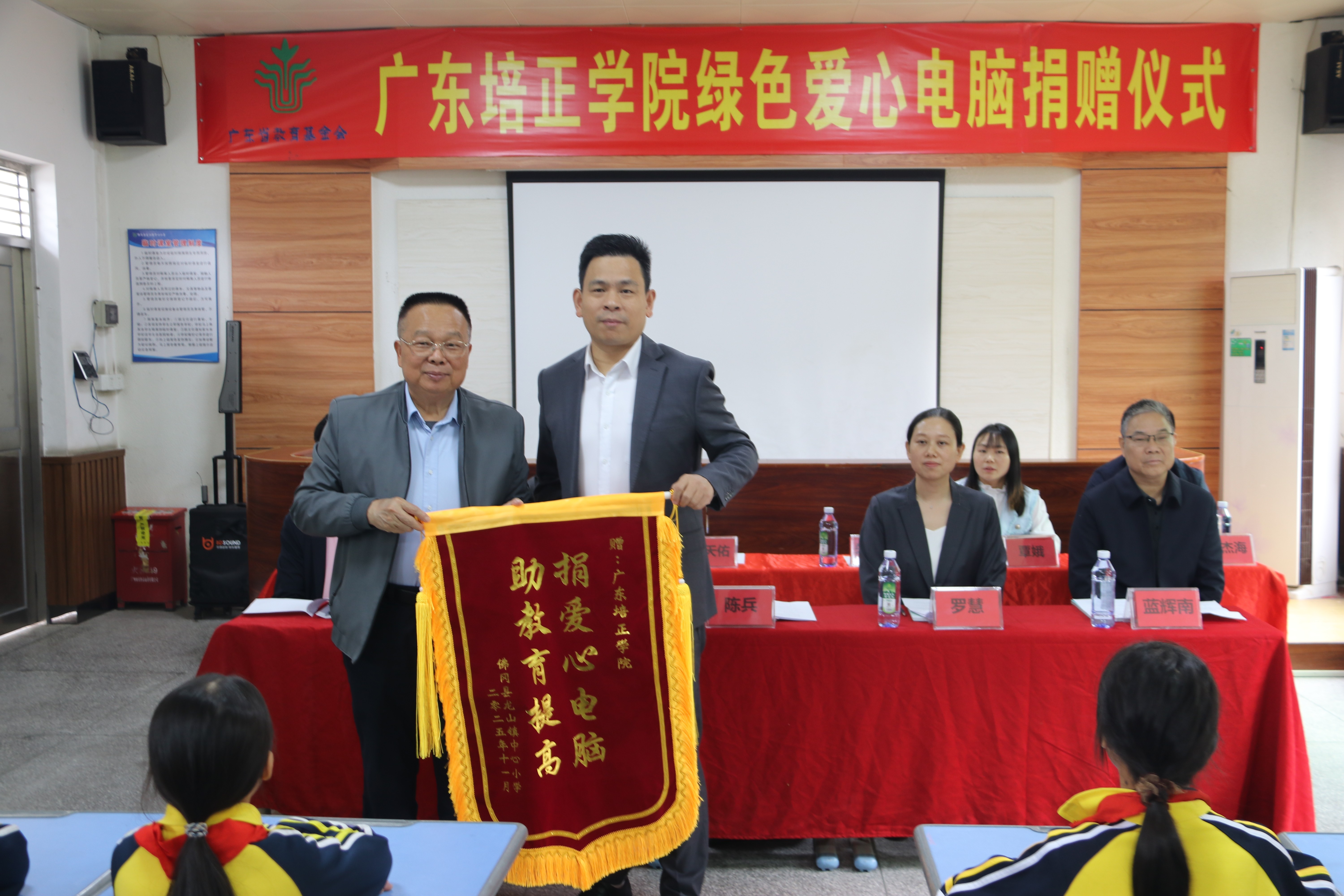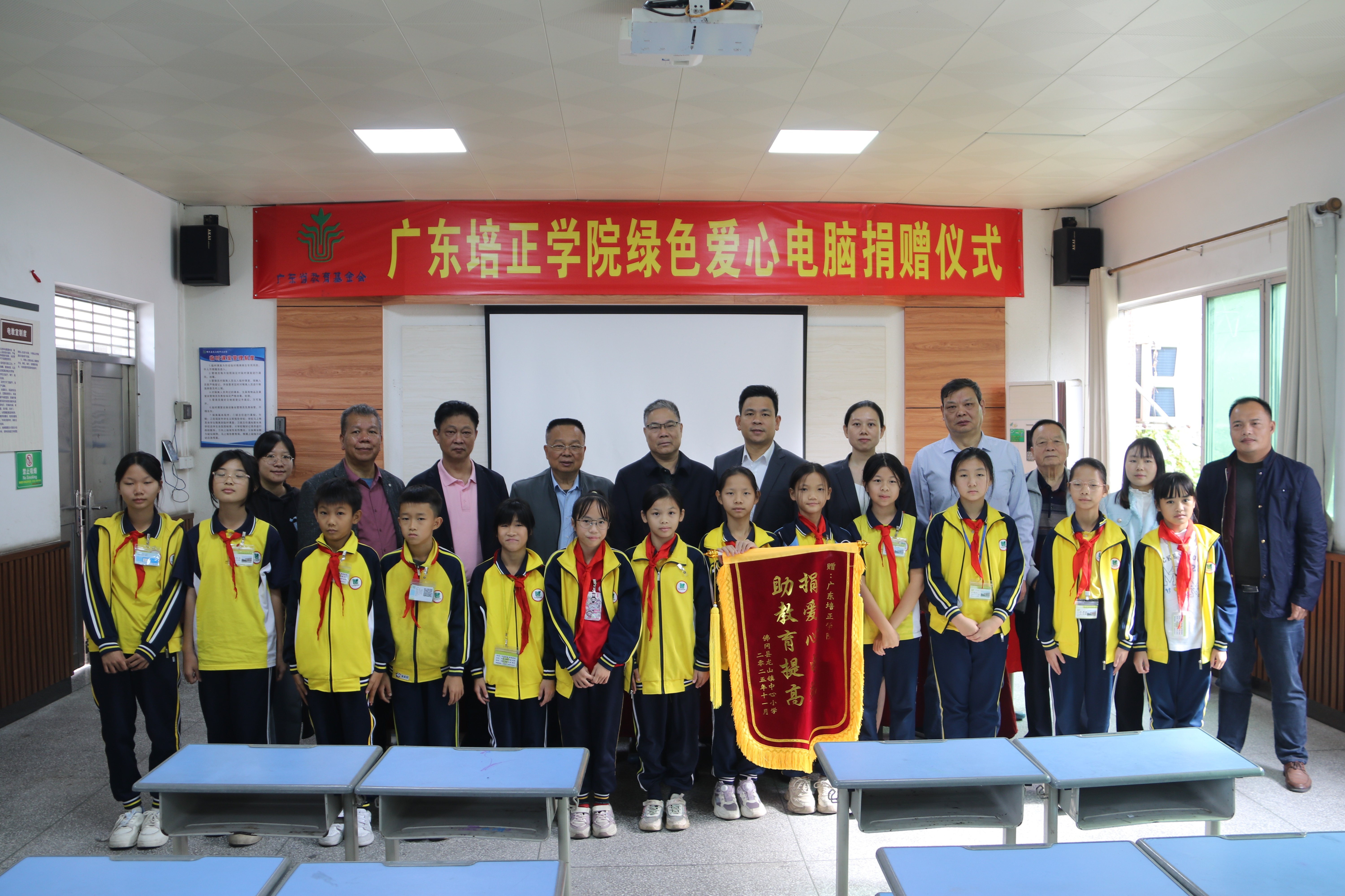 11月14日上午,在佛岡縣龍山鎮中心小學舉行廣東培正學院“綠色愛心電腦”捐贈儀式。